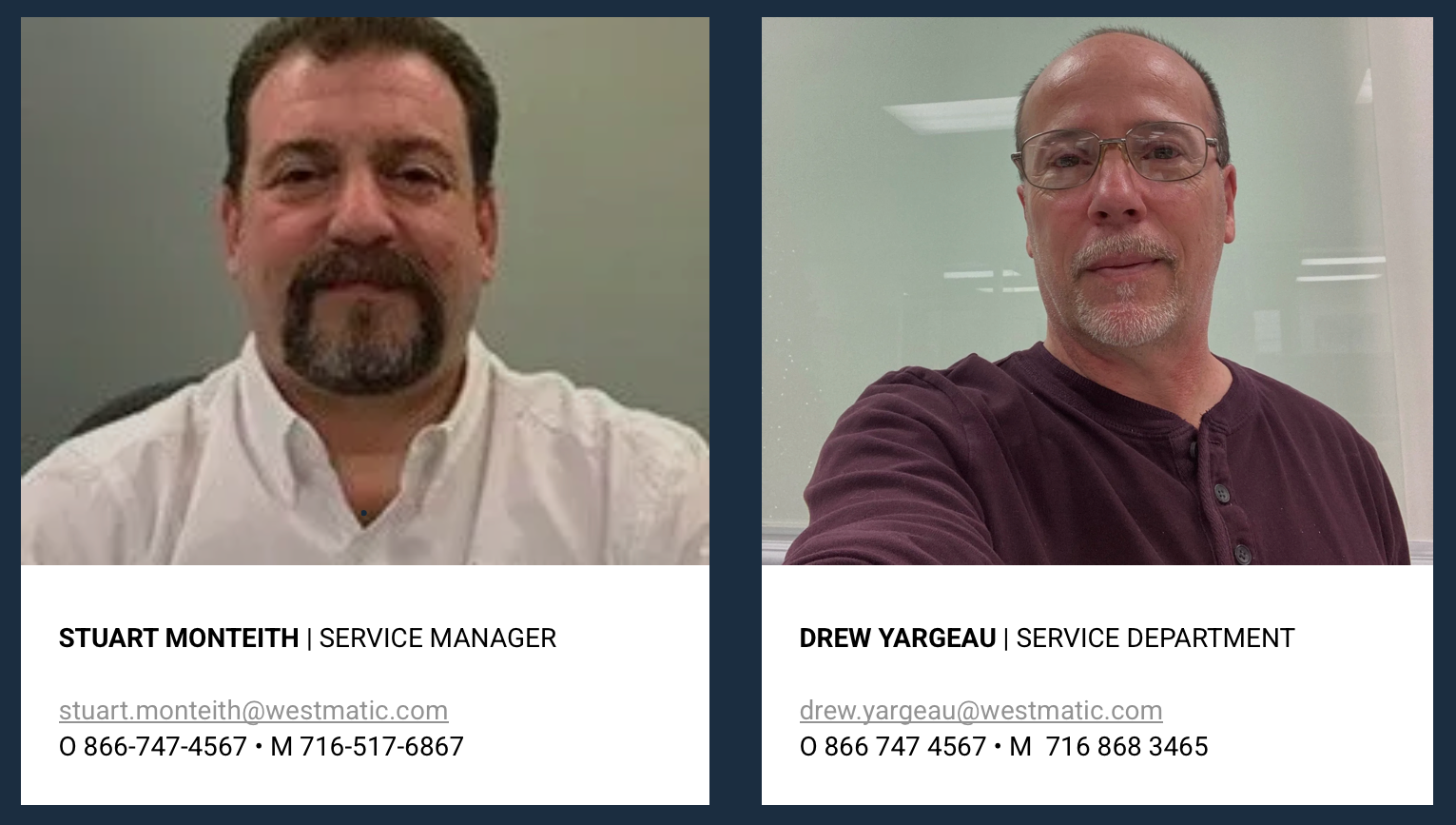 Westmatic’s service vans are fully stocked with the most vital spare parts and our experienced technicians are available by phone to support and assist you with their technical expertise.